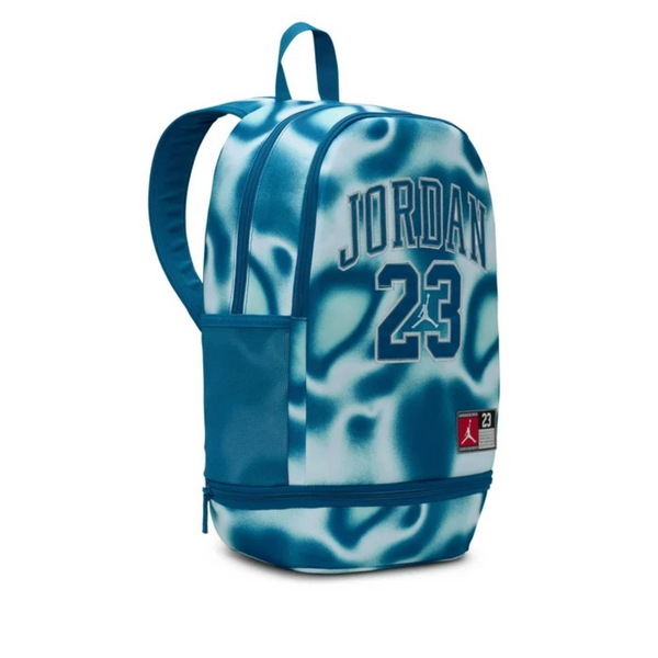 Tornister Air Jordan 23 Jersey w niebieskiej wersji kolorystycznej to świetna propozycja dla uczniów, którzy cenią sobie sportowy styl i funkcjonalność.